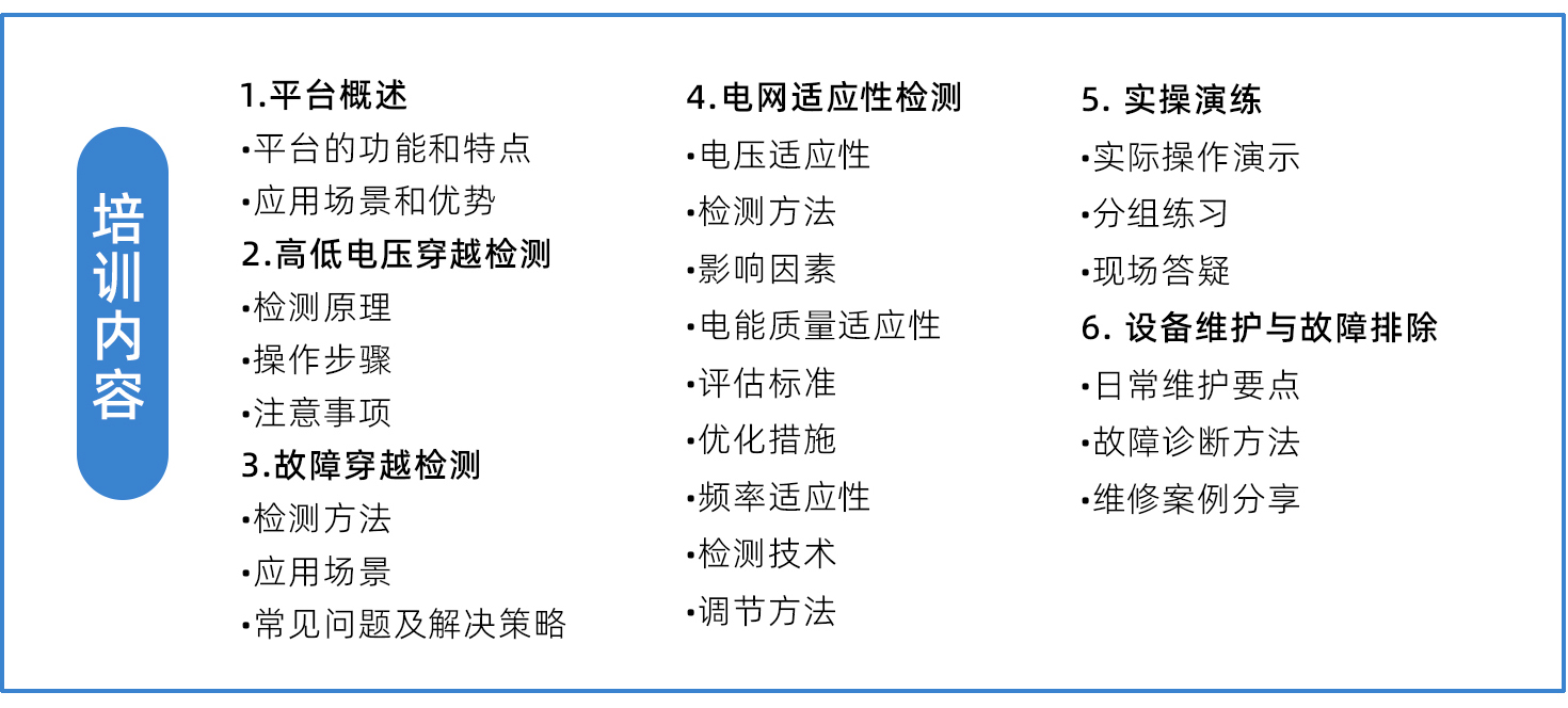 •掌握高低电压穿越检测、故障穿越检测以及电网适应性检测(电压适应性、电能质量适应性、频率适应性)的具体方法和步骤。